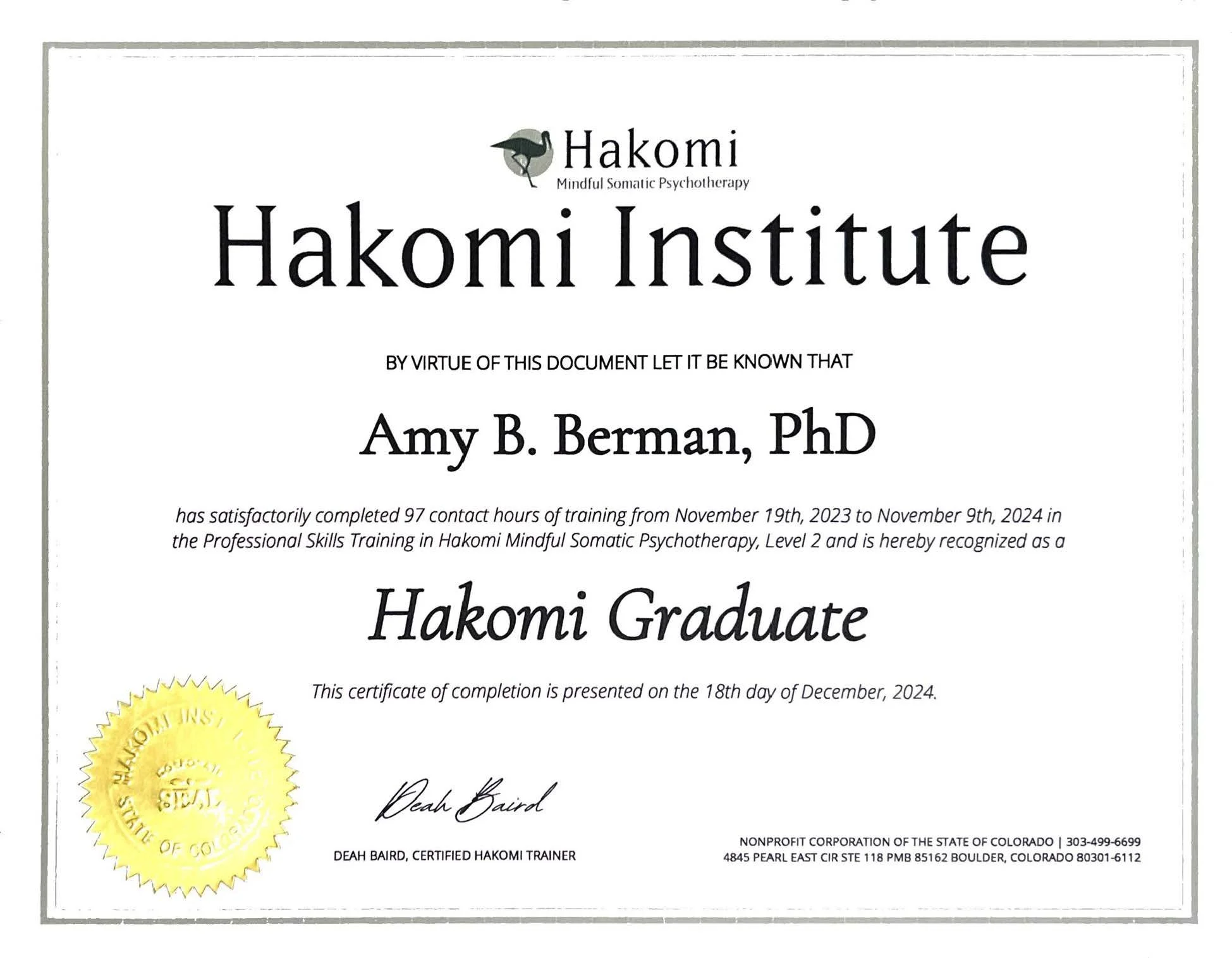 Dr. Berman is an EMDRIA EMDR Certified Therapist, EMDRIA EMDR Approved Consultant, and a Brainspotting level 2 provider with a specialty in grief and loss, attachment work and complex trauma. Her therapeutic approach deeply rooted in mindful self-compassion (MSC) and she is a MSC teacher in-training with The Center for Mindful Self-Compassion, which was founded in 2012 by Dr. Chris Germer and Dr. Kristin Neff to be the global leader in self-compassion training and practice. She studied Mindful Self-Compassion with the UC San Diego Center for Mindfulness and a two-year Hakomi professional training program with the Hakomi Institute of the Pacific Northwest.